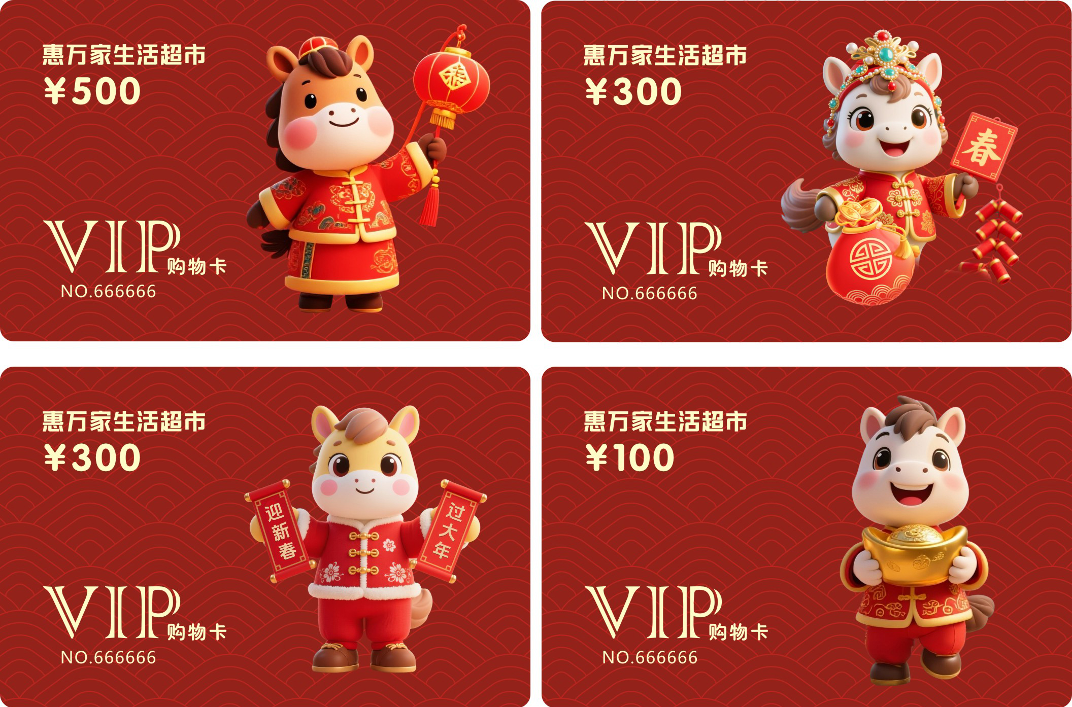2026年马年礼品卡新年提货卡卡通马超市购物卡红色喜庆会员卡