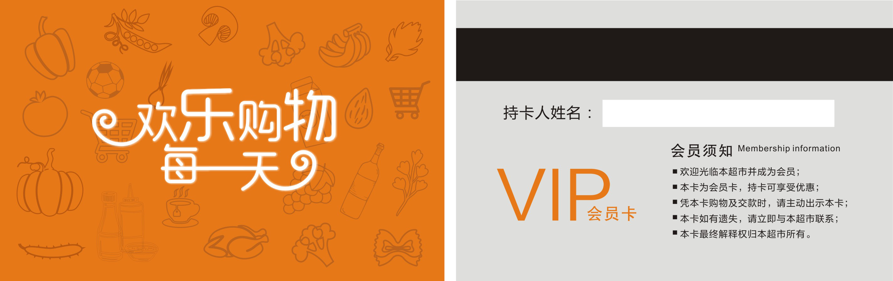 橙色超市会员卡超市购物卡生鲜超市提货卡