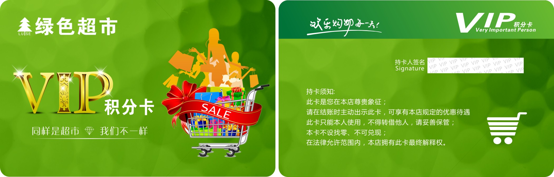绿色生鲜超市会员卡积分卡水果会员卡